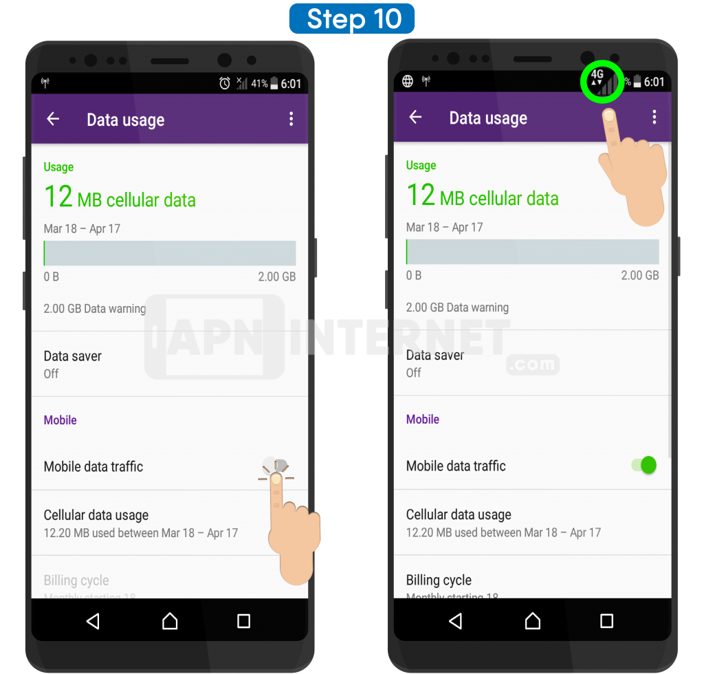 Step 10: Next on the "Data usage" screen, you must activate the option to enable "Mobile data traffic".